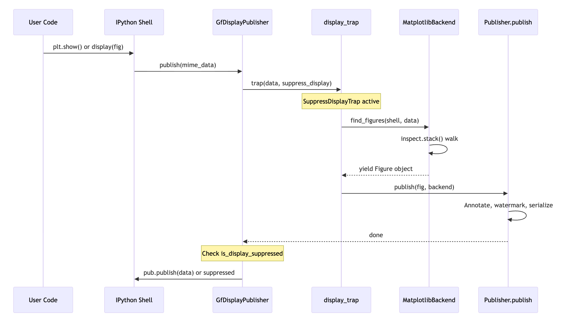 SuppressDisplayTrap temporarily disables the trap during publication to prevent infinite recursion (publishing a watermarked figure would itself trigger